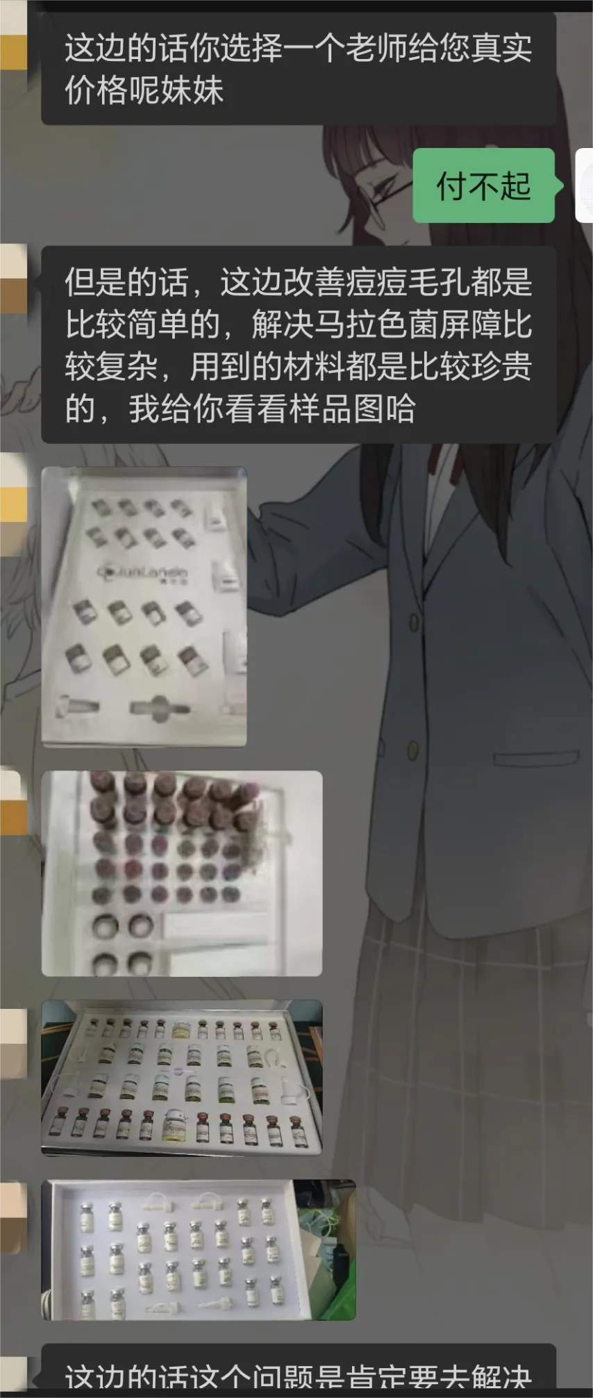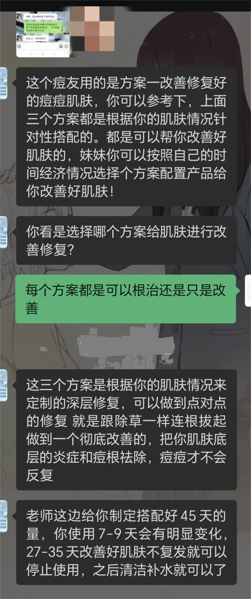 然则,这位“护肤带领”却每天皆给小曾发顺利案例,还说不错根据小曾的面部情况,为她私东说念主定制专属祛痘决策。