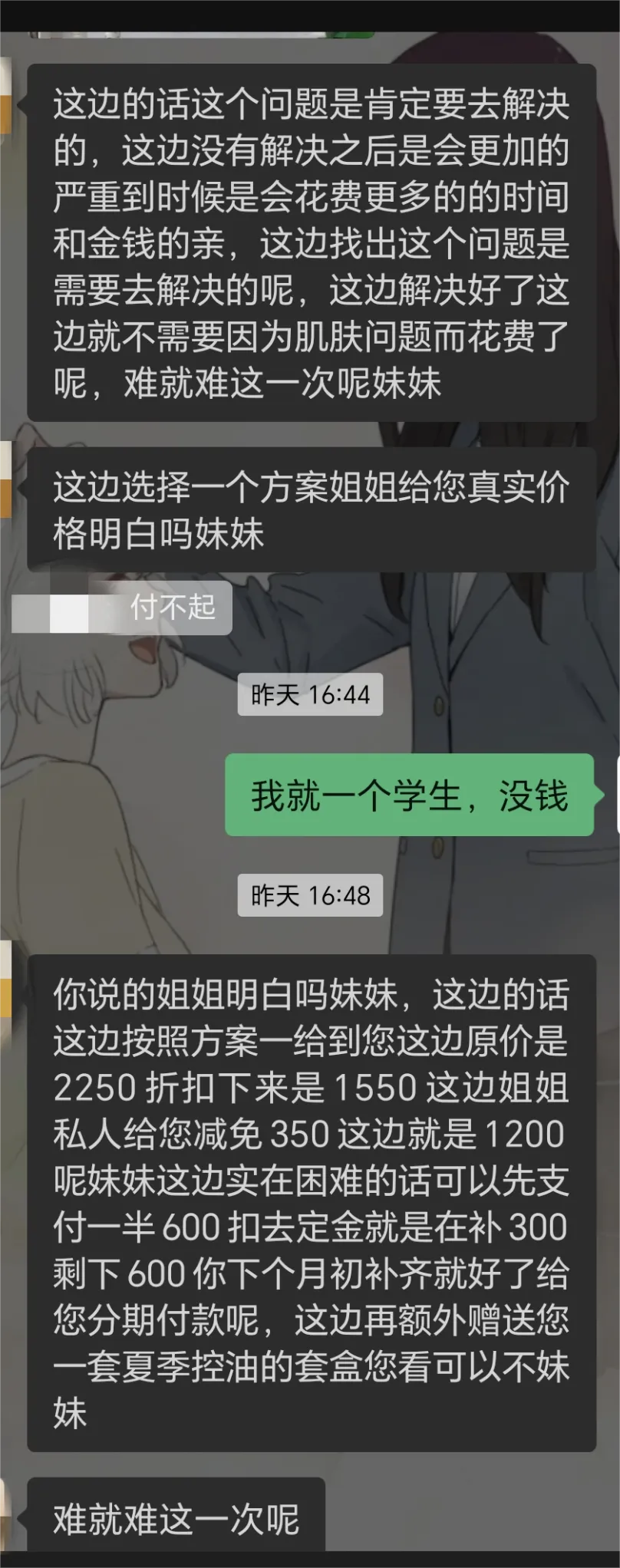 别称17岁学生在“护肤带领”的套路下,