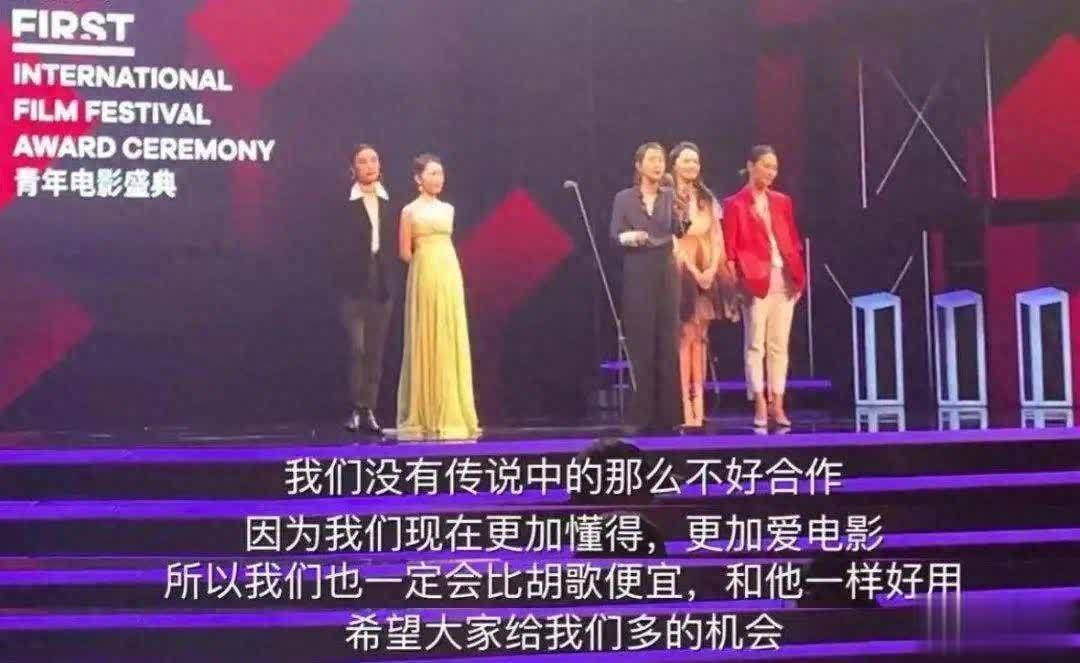 在2019年First电影节上,海清还拉着宋佳、姚晨等几位“大龄”女演员,“倾销”我方,“我们一定会比胡歌低廉,和他相同好用。”