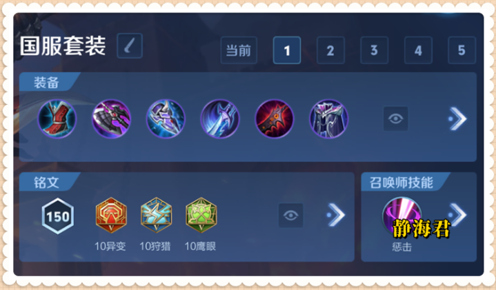 推选铭文是:异变×10、狩猎×10、鹰眼×10。