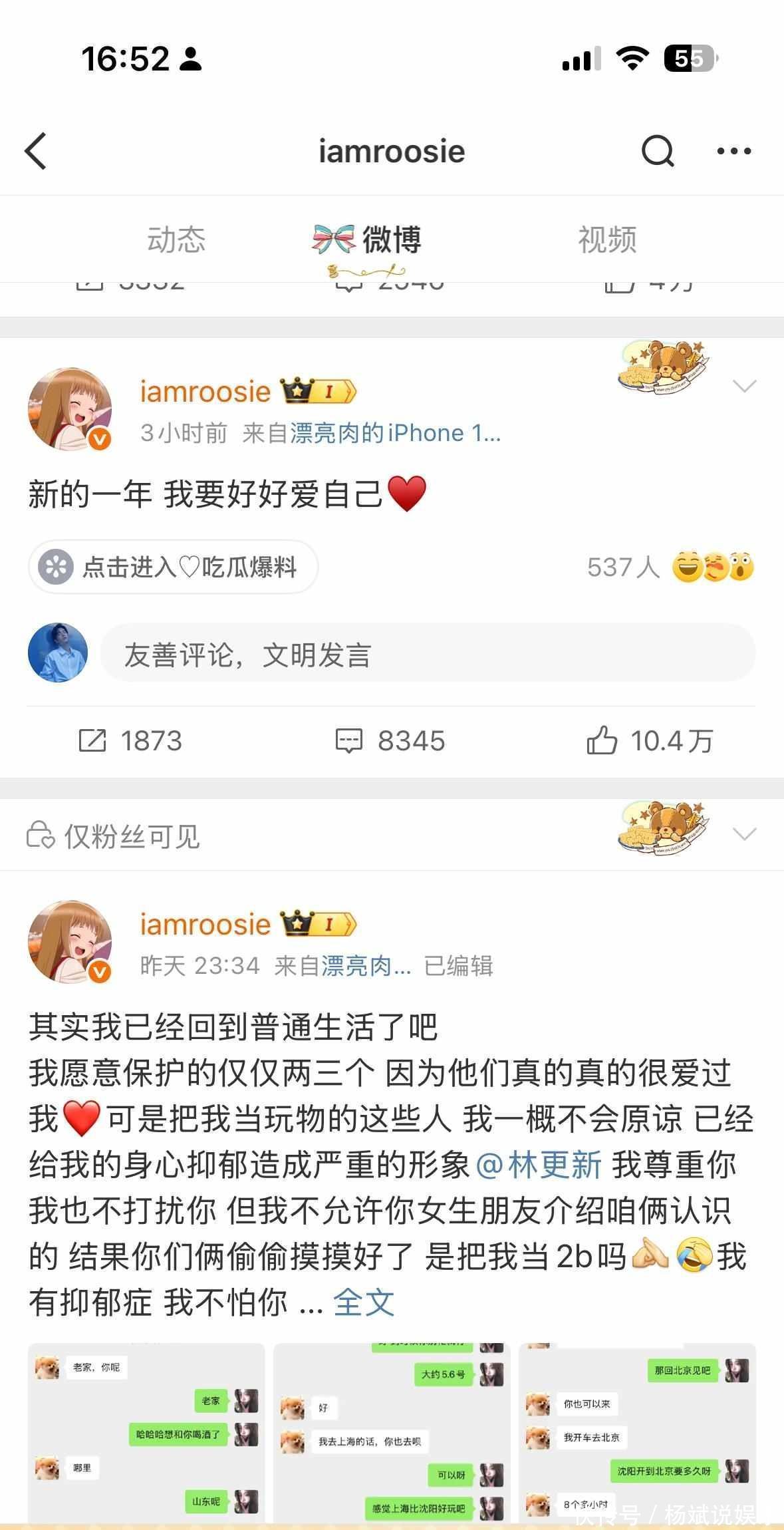一月三日一大早,有个叫司晓迪的网红须臾发了一篇长文,说我方和鹿晗、林更新、范丞丞这些男明星齐谈过恋爱,还放出了聊天截图和一些像片,她提到我方被当成了心思垃圾桶,当今得了抑郁症,相等点名要林更新说念歉,这件事一出来,热搜迅速就爆了赌钱app下载,有十几亿东说念主看到。