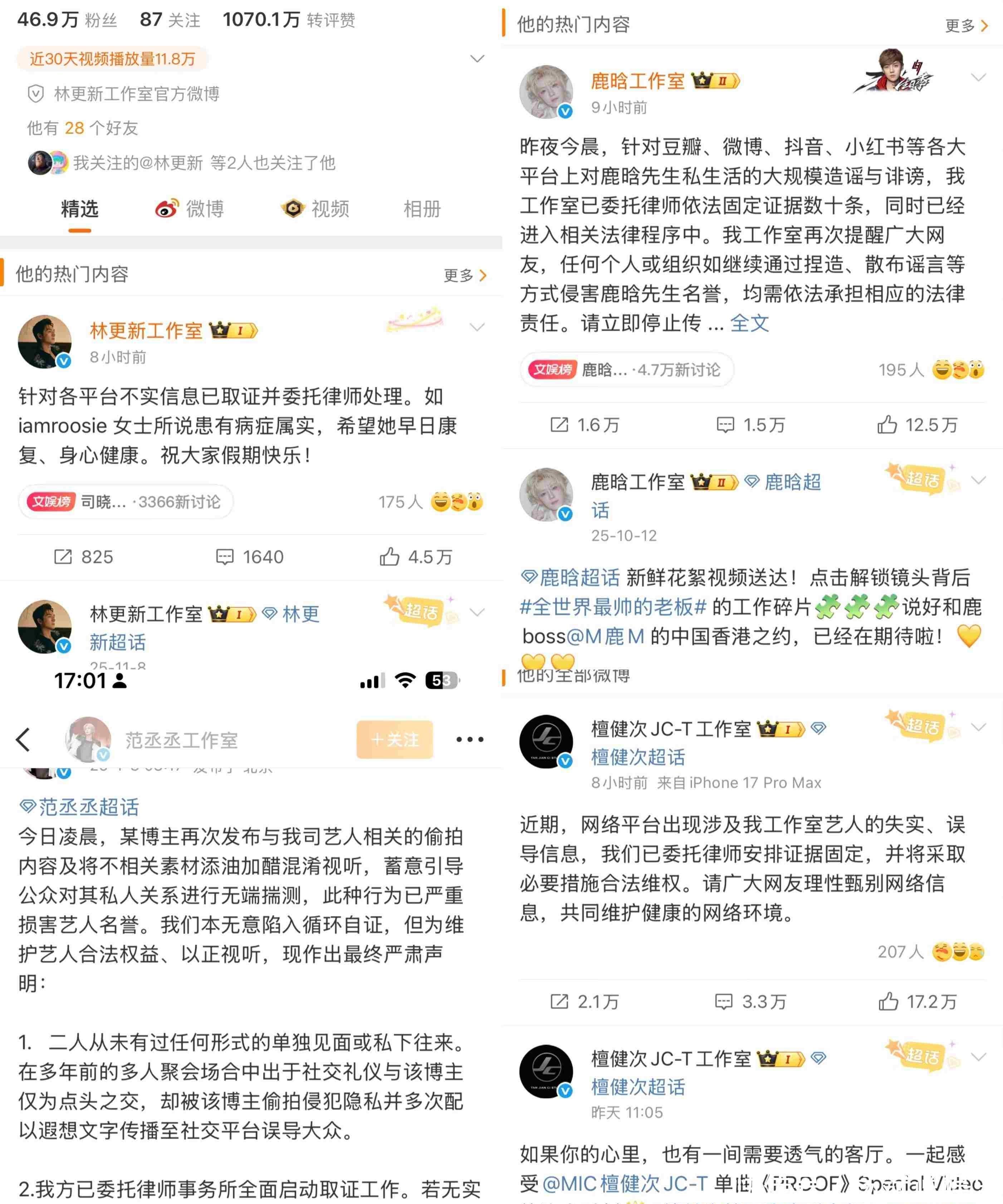 没过多久,通盘被提到的艺东说念主使命室齐出来辟谣,说要告司哓迪胡编乱造,可她把通盘帖子齐删掉,只留住与林更新的聊天纪录,还缔造成仅粉丝可见,民众便启动测度她为何只保留这条骨子,可能还有事情莫得说完。