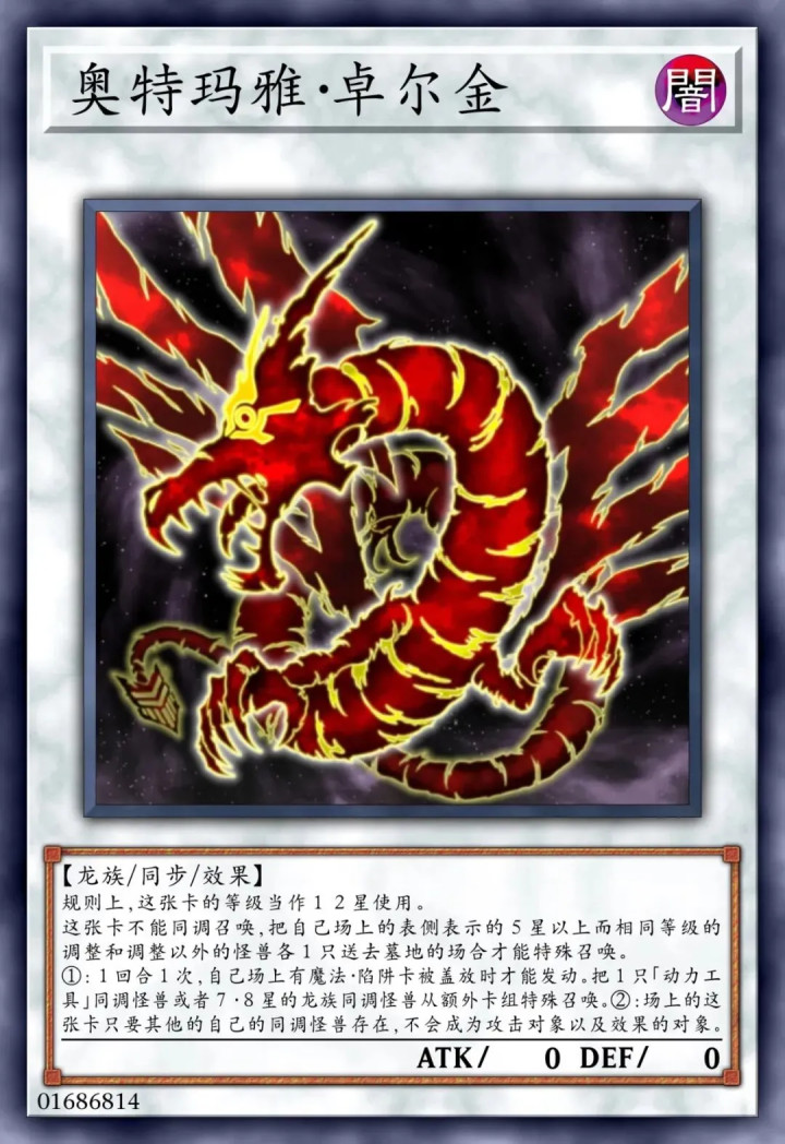 红龙是动画《游戏王5D‘s》中的热切认识,造型亦然奥特玛雅·卓尔金的盘算推算原型。两张“究极”卡王人不行频繁同调召唤,卡面等第为0,但法令上均视为12星。