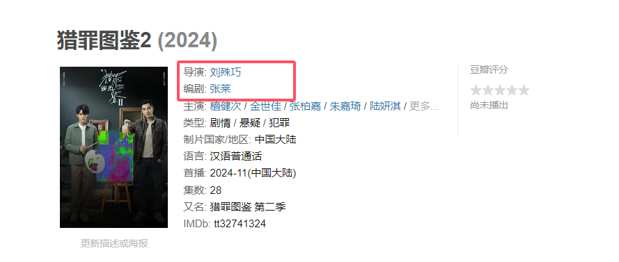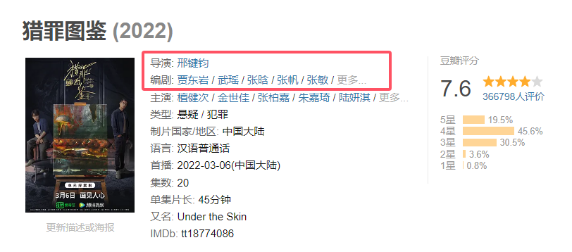 《猎罪图鉴》也幸免不了这么的情况,第一部的贾东岩、武瑶担任总编剧,邢键钧担任导演。可到了第二部,编剧换成了张莱,导演则是刘殊巧。