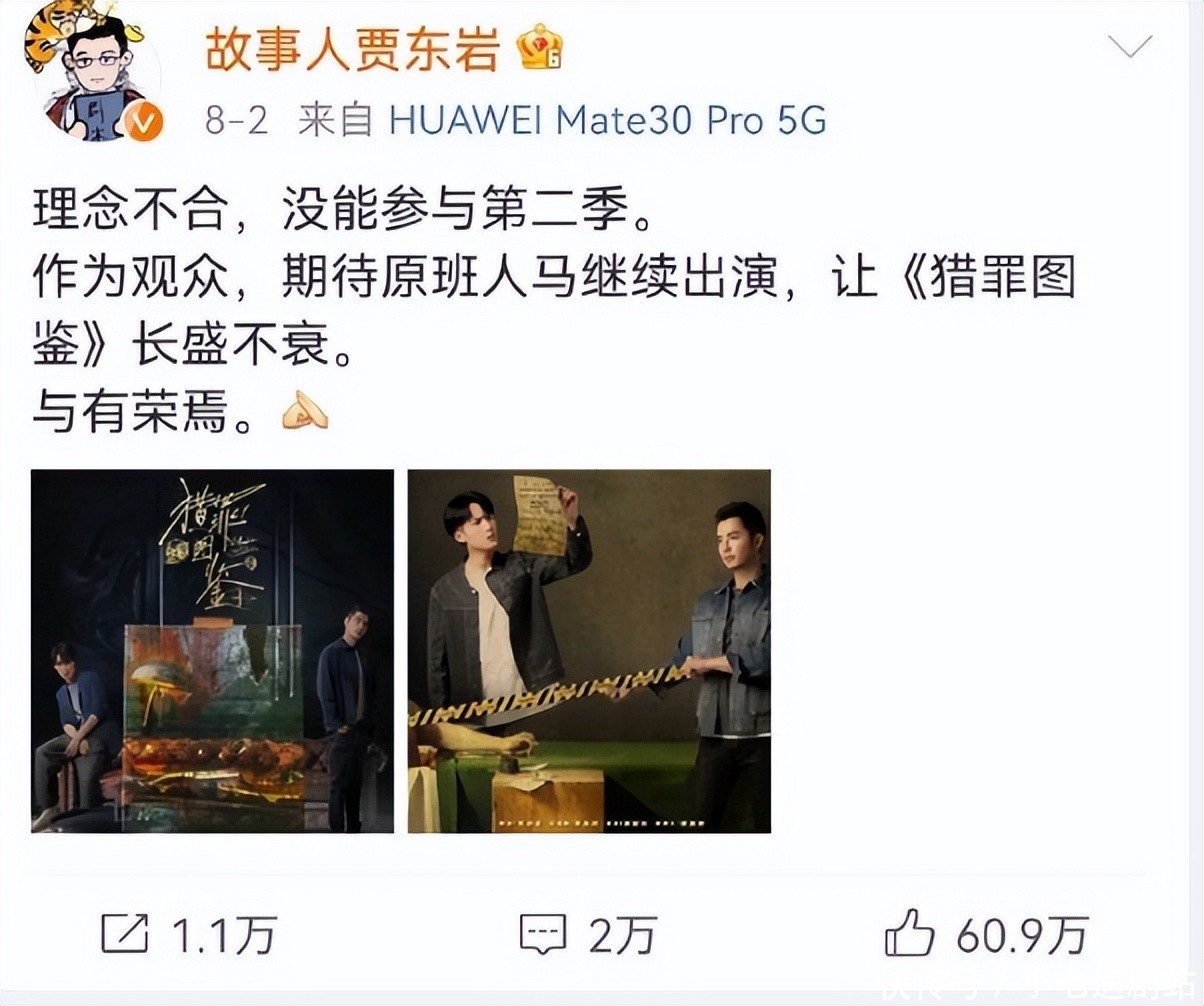 此前因为《猎罪图鉴》换编剧这件事引起过热议,贾东岩因为不应承剧组的某些决定,因此退出编剧使命,网友对此亦然人言啧啧。
