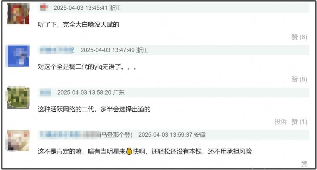不少网友看到甜馨发单曲出谈驳斥不一,有的感叹青娥初长成,有的合计甜馨的声息莫得天禀,唱歌全凭嗓子,莫得任何手段。其实,甜馨才12岁,要12岁的小孩子领有庞大的吟唱手段很难,但就因为是星二代,举手之劳的踏足文娱圈亦然很难评。