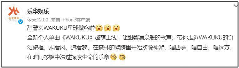 那么,甜馨有签约经纪公司吗?从贾乃亮李小璐纷纷与乐华文娱的互动不错看出两者应该关系系,而乐华文娱提到的作客《WAKUKU》星球也被网友解读为签约的意念念。不外,《WAKUKU》亦然甜馨的歌名,很可能仅仅案牍。