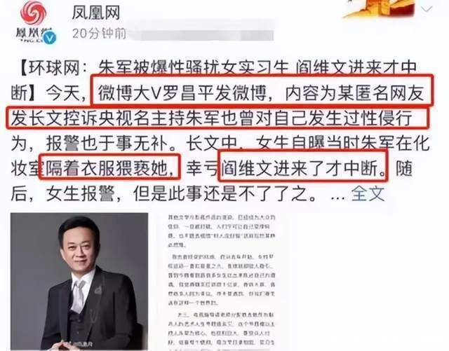 “断崖式软弱”的原因很通俗,这场握续纠缠了好几年的公论谴责,被实习生弦子指控性纷扰后,打讼事和法院判决的音问等了好几年,险些每一天关于明显著白的朱军来说都是煎熬。