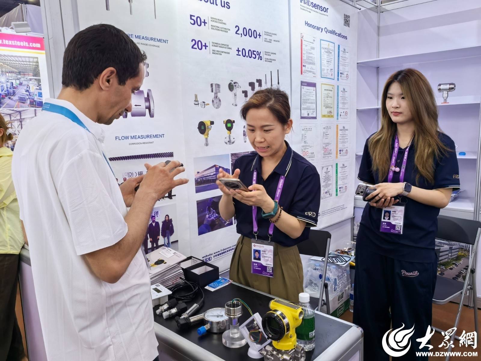 4月15日,第139届广交会先进制造展区,山东福瑞德测控系统有限公司的展位前,东谈主流不断。展位前,公司运营副总魏慧琳和共事们,一边向境外采购商展示着高精度单晶硅压力传感器,一边先容那时刻上风。