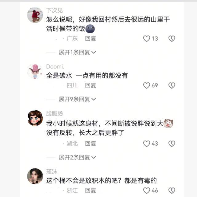 这画面,平直给各人看笑了。东谈主家送饭皆用饭盒,这位宝妈平直用的塑料小桶,即是那种装玩物,能够装什么小料的塑料桶。